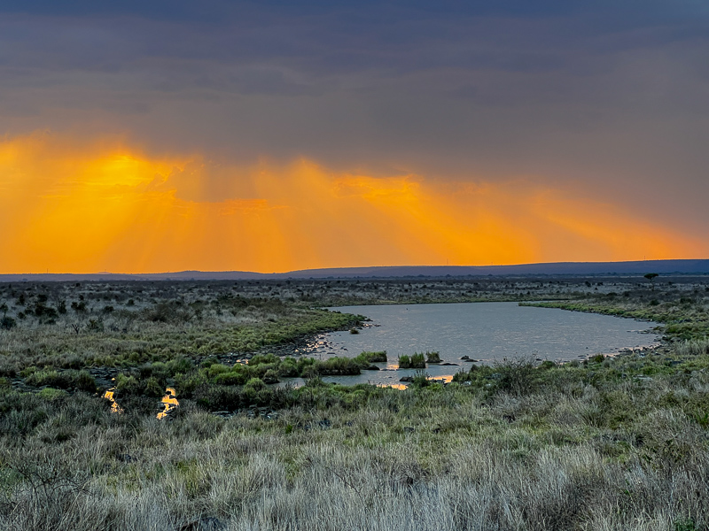 Mugie is split into two halves by the main road — roughly 25,000 acres on each side — and that scale is part of what makes it feel the way it does. It isn’t a small, contained ecosystem where the same animals circle predictably. It’s a proper piece of landscape, and things happen at the edges of it that you don’t quite expect. That evening, Sammy took us across to the quieter half of the conservancy.