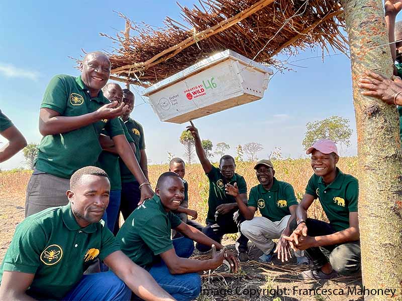 Farmers are trained in practical coexistence techniques such as beehive fences and chilli deterrents, which provide natural, non-violent protection for crops while producing honey as a sustainable income source. Participatory mapping and biodiversity monitoring strengthen community stewardship of elephant habitats and corridors.